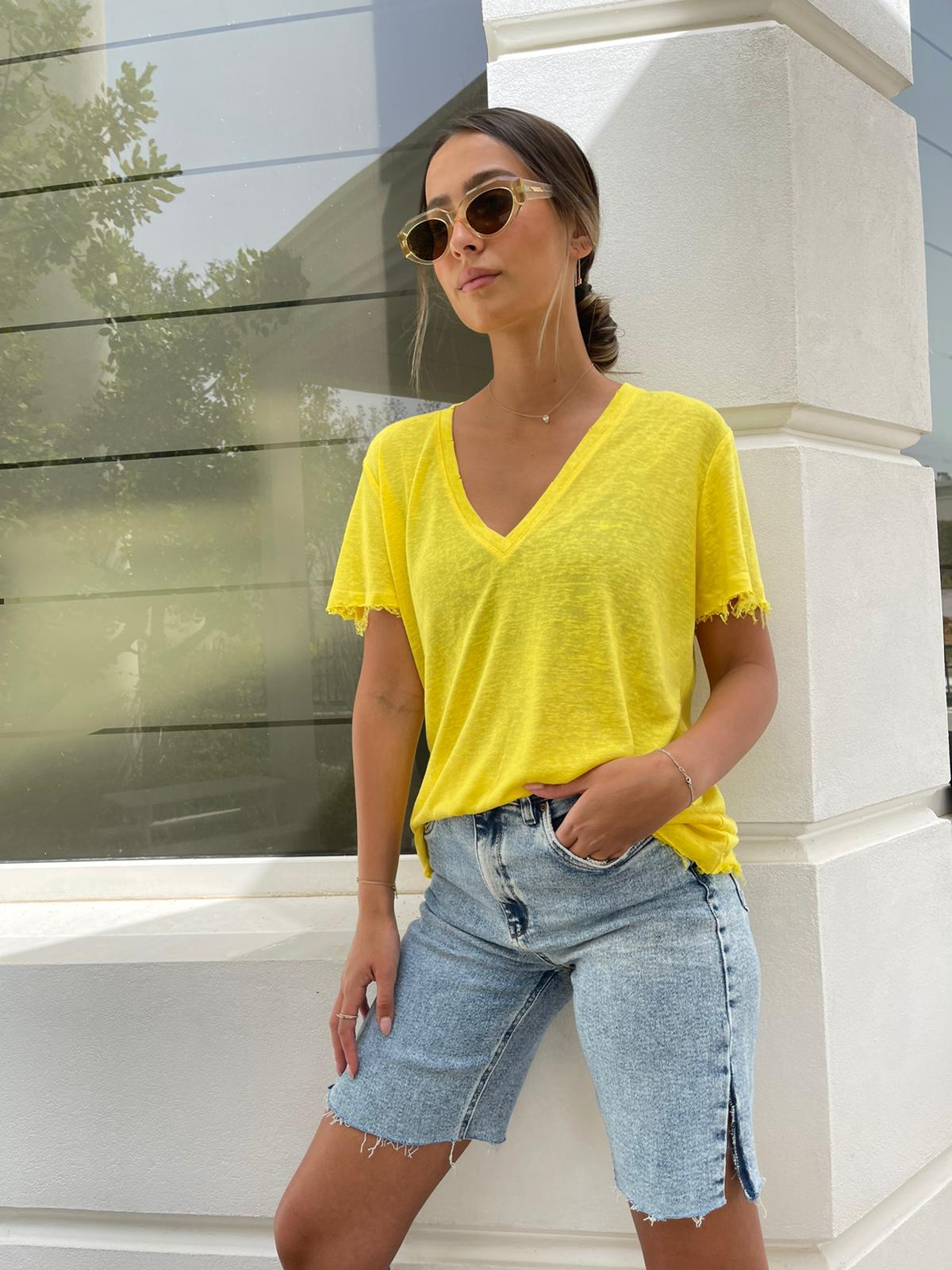 דף הבית » חנות » חולצות » בייסיק פשתן קרעים – צהוב